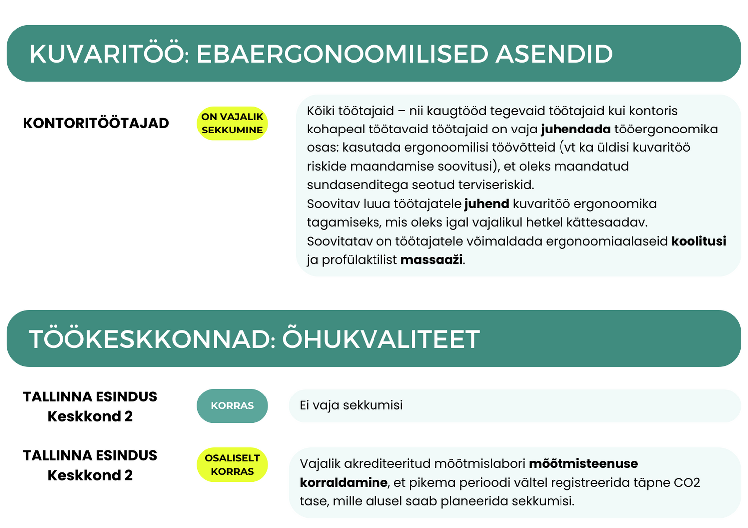 töökeskkonna spetsialistid parenduste planeerimiseks ja Tööinspektsiooniga suhtlemiseks;